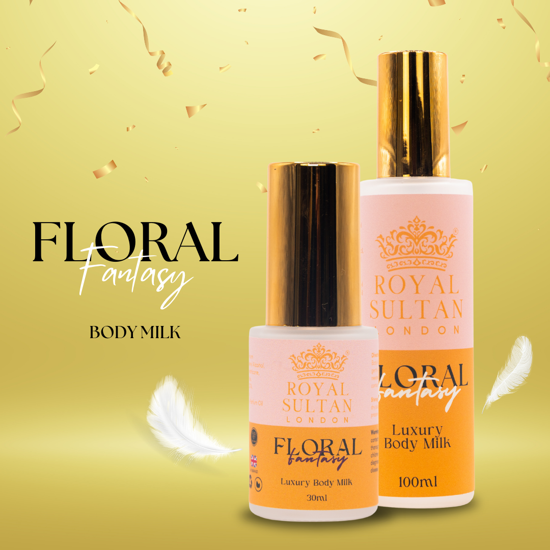 Our Luxury Body Milk epitomizes opulence, infused with the irresistible allure of Floral Fantasy to hydrate normal to dry skin, leaving it irresistibly soft and smooth. Its lightweight formula effortlessly penetrates the skin, ensuring a non-greasy finish that indulges your senses with every application.