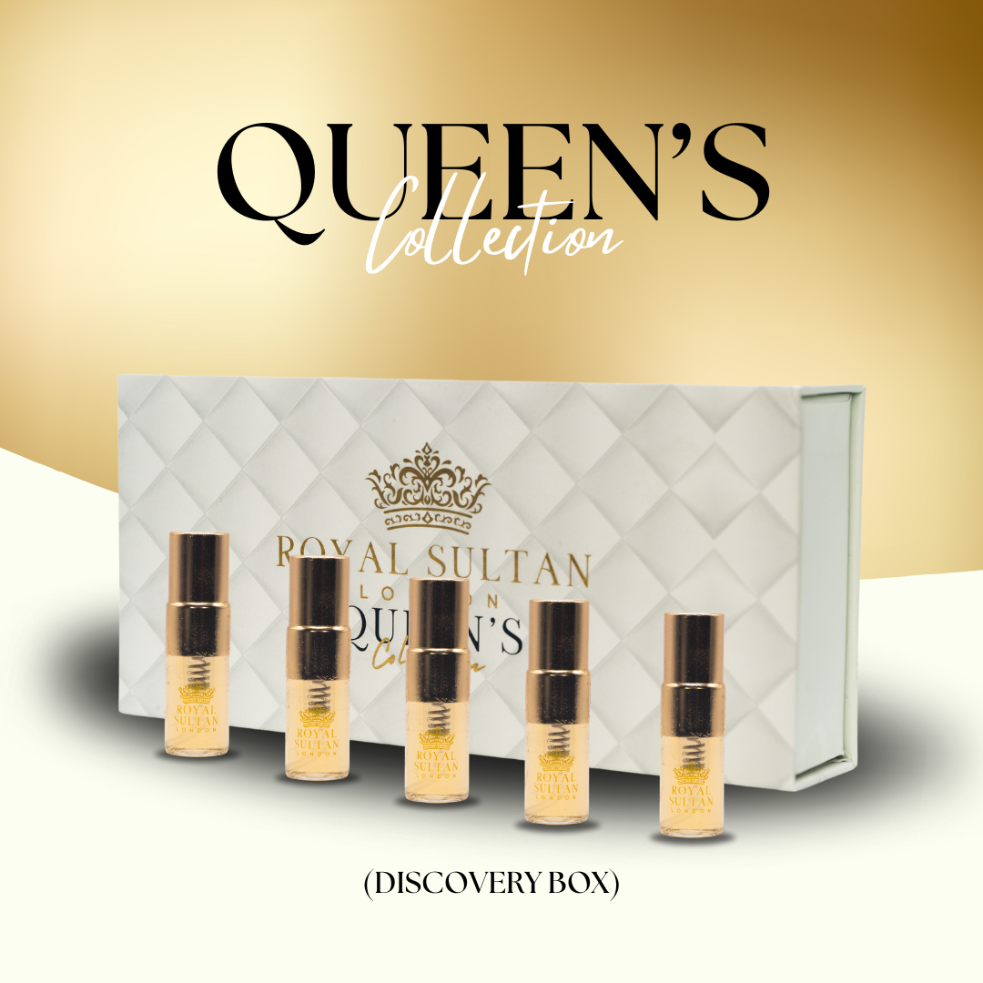 Inside the Queen's Collection Discovery Box, you will find five exquisite scents, each presented in convenient 2ml Perfume Oil vials and 3ml Eau de Parfum spray bottles. Whether you're a discerning